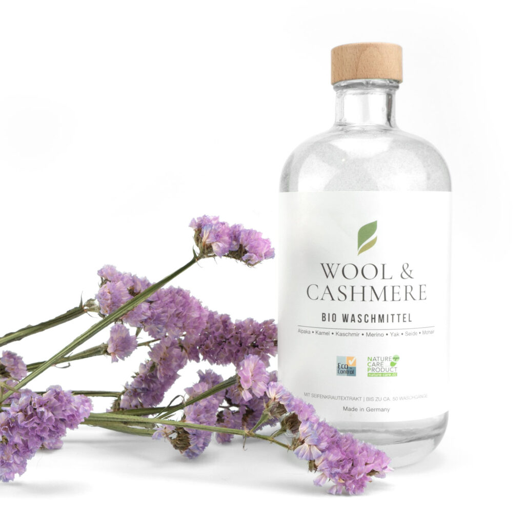 Questo nuovo detersivo biologico per lana e cashmere è particolarmente delicato e può essere utilizzato con tutte le fibre. È composto da ingredienti facilmente biodegradabili ed estratto di saponaria, una pianta utilizzata per lavare il bucato fin dal Medioevo.